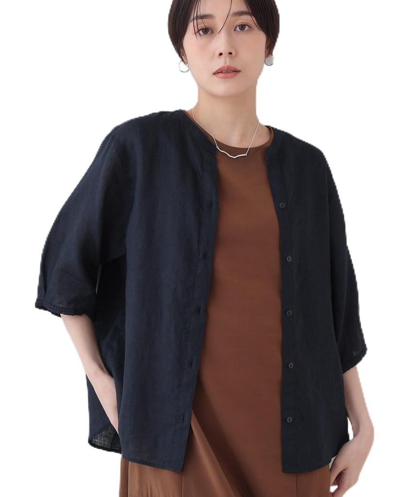 INDIVI Year Sleeve Band Collar Blouse 12782403 Navy Size 38 Shirt/Blouse [Every Popular!/French Linen] 5/8 Women's (094) (M)
