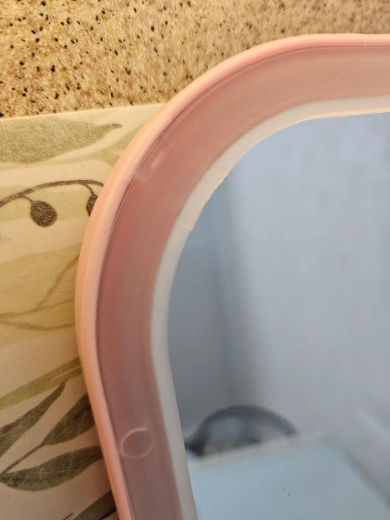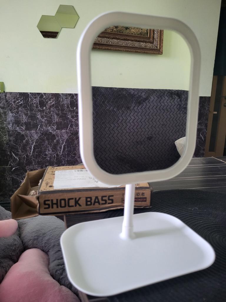 The mirror shines well, although it's small, the face fits :) the light can be adjusted, there is a charging cable. Thank you