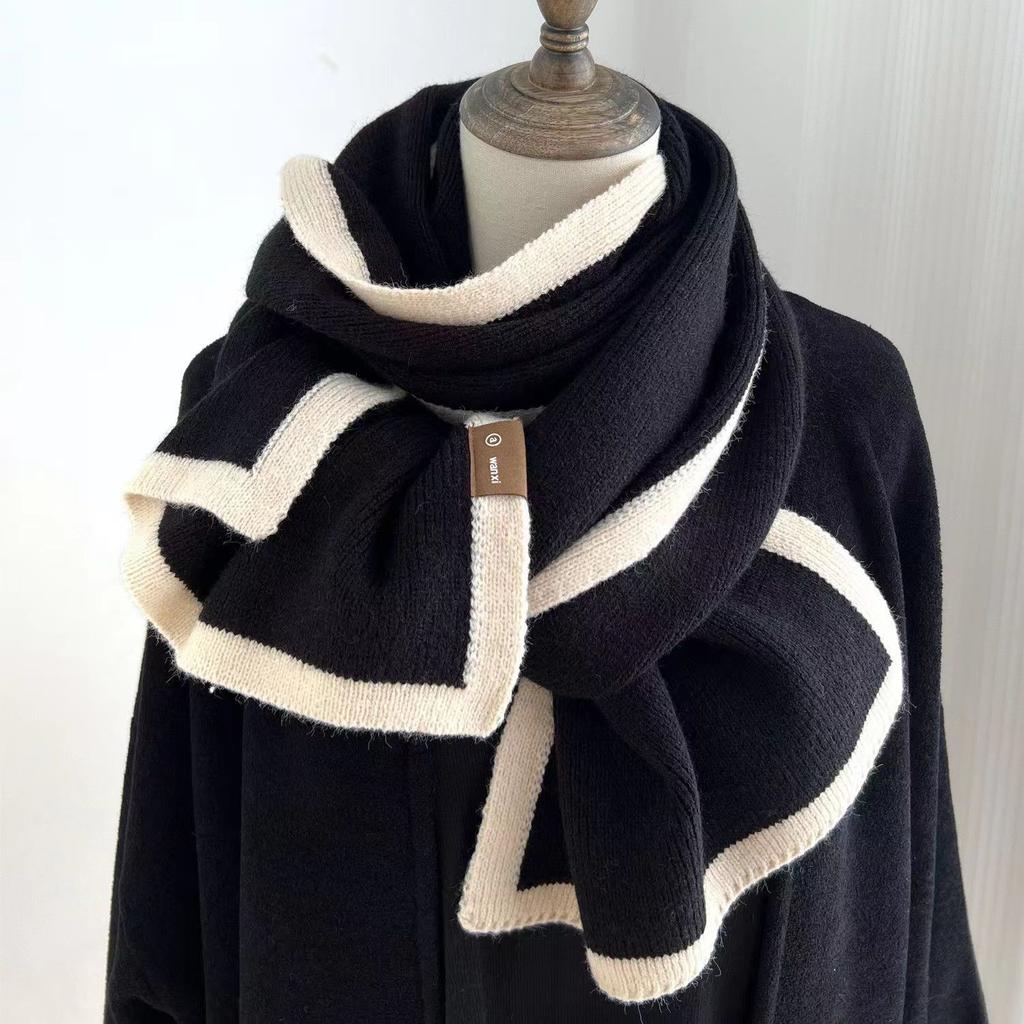 Black and White Color-Blocked Scarf Winter High-End Border Knitted Wool Niche Design Versatile Unisex Neck Warmer