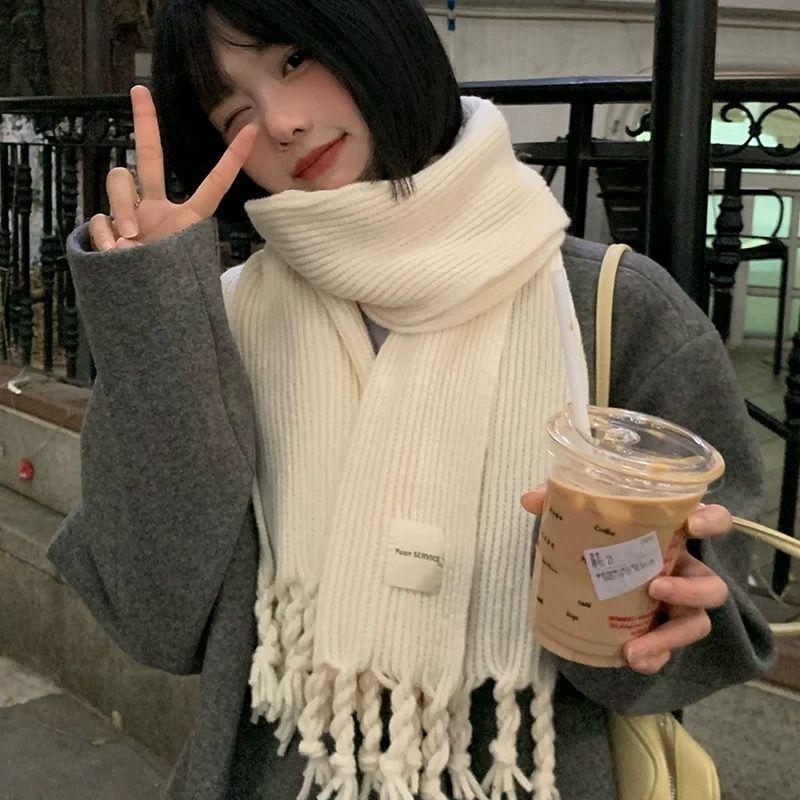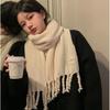 Student Solid Color Fringed Scarf Autumn Winter Warm Knitted Neck Warmer Couple Wool Thickened Neck Wrap