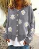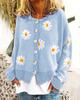 Women's Floral Print Long Sleeve V-Neck Sweaters Button Down Ribbed Cuffs Knitted Cropped Cardigan Loose Casual Tops