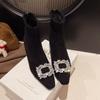 Elastic Women's Winter New Pointed Rhinestone Square Buckle Fashionable Velvet Warm Stiletto Short Boots