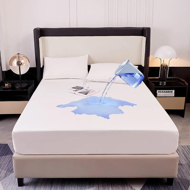 Safe Waterproof Mattress Protector, Soft Comfortable Breathable Solid Color Bedding Mattress Cover Fitted, No Pillowcases