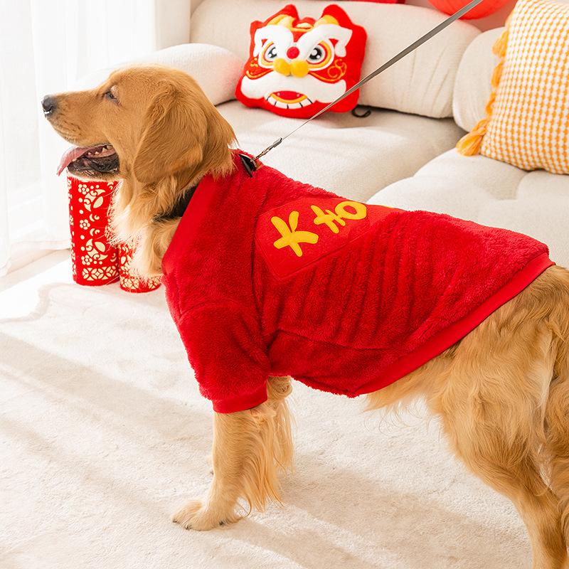 And Large Dogs Celebrate the Chinese New Year, Golden Retrievers, Side Herding, New Year's Greetings, Two-legged Warm Fleece, Pet Dog Clothes