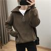 Harajuku Solid Color Polo Neck Zipper Women's Sweater Autumn Winter Casual Loose Knitted Sweaters Tops Women Thicken Pullover