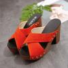 New Korean Version Open-toed Thick-soled Sandals Thick-heeled Waterproof Table Slippers Women's Cross-strap High-heeled Large-size Women's Shoes