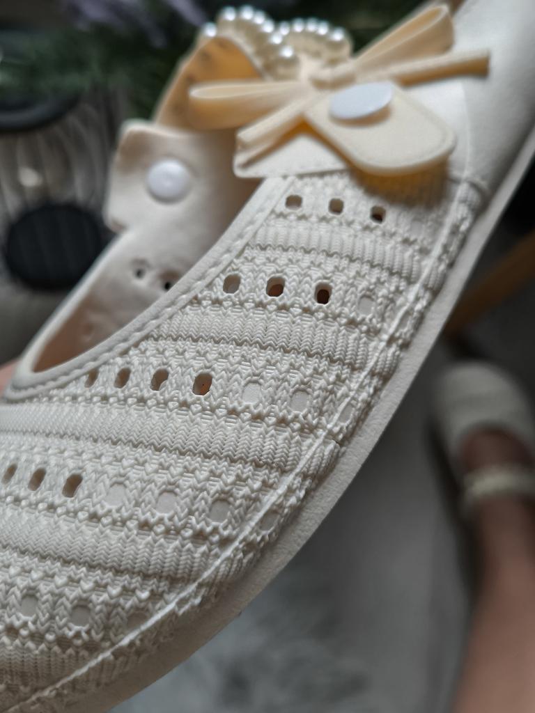 Beautiful jelly shoes)) Remember those rubber shoes for the beach that everyone used to wear everywhere)) these cute, very elegant shoes are made of rubber material, you can wear them to the beach, to the pool with beauty)) I showed all the details in the video. Made neatly, they really do look cooler than just flip-flops. Size 37-38 for a foot length of 23.5 is right on the limit, 23cm would be excellent. The sole is glued inside with an eco-leather insole. These flip-flops will last forever)) because they are molded. The sole is ribbed, it shouldn't slip. I highly recommend it π§‘
