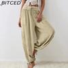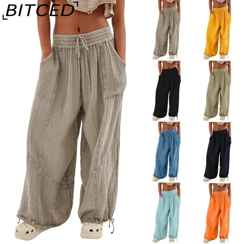 BITCED 8 Color Women High Elastic Waist Trousers Wide Leg Loose Pants Deep Vest Pleated Ankle Pockets Solid Color Soft Ladies Casual Pants