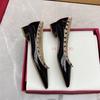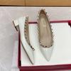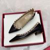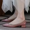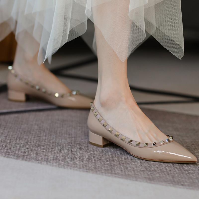 Spring and Summer New Versatile Rivet Pointed Shoes Medium High Heels Light Mouth Shoes Thick Heel Willow Nail Shoes Large Size Single Shoes Women