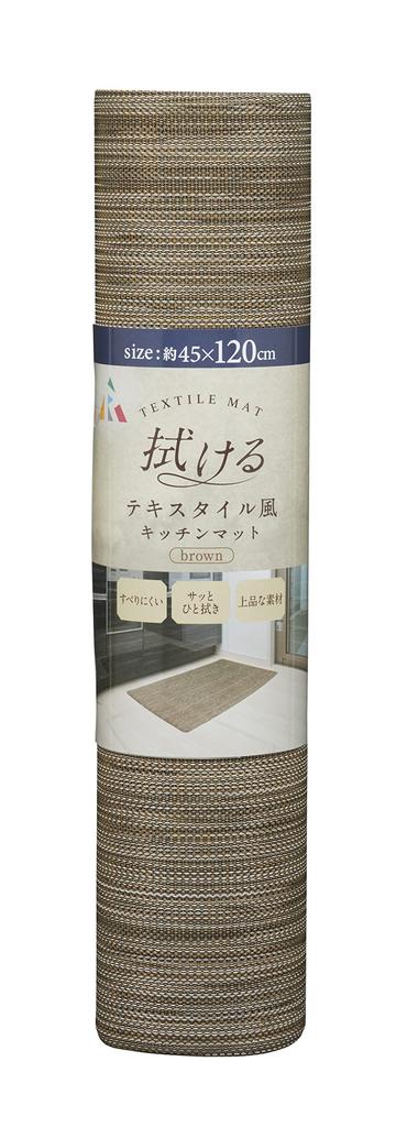 Wipeable Kitchen R(R) +it+id Textile-Style Mat, Brown, 120cm, 45x120x0.3cm, Water-Resistant, Non-Slip, TK-001-AA
