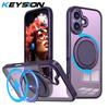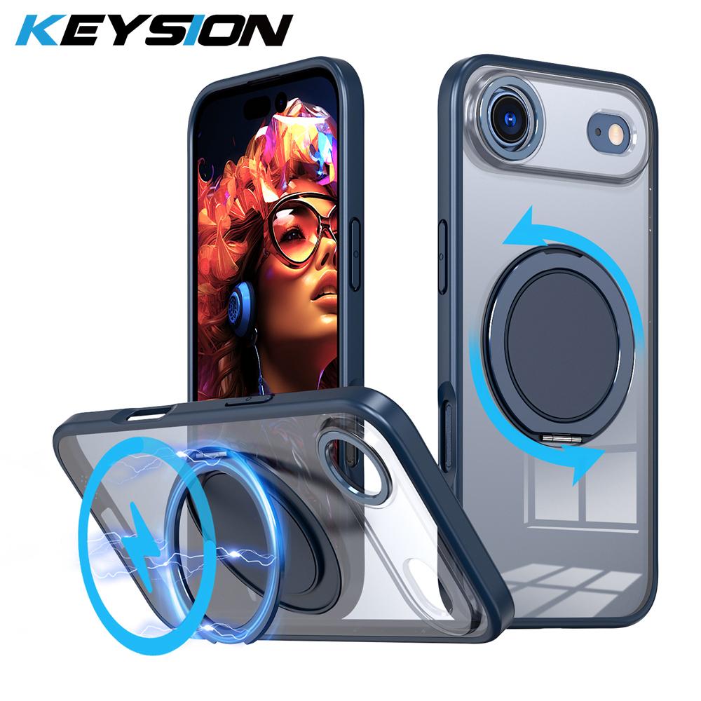 KEYSION Shockproof Matte Transparent Case for MagSafe for iPhone 17 17 Air 360° Rotating Magnetic Ring Stand Phone Back Cover