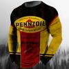 Vintage Men's T-shirt Long Sleeve Biker Tops Tees 3D Oil Print Motorcycle T Shirt Oversized Loose Texaco Man Tshirt