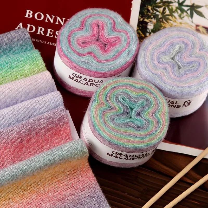 6pcs Gradient Yarn Chunky Polyester Knitting Bundle for Gloves & Hats - Multicolor Ombre, 600g DIY Yarn