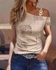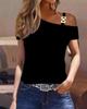 2023 Bestseller Women's Simple Short Sleeve T-Shirt with Metal Buckle Print