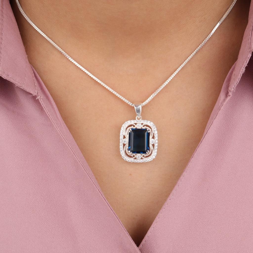 London Blue Topaz Gemstone 925 Sterling Silver Jewelry Zircon Designer Pendant CZP-11-9