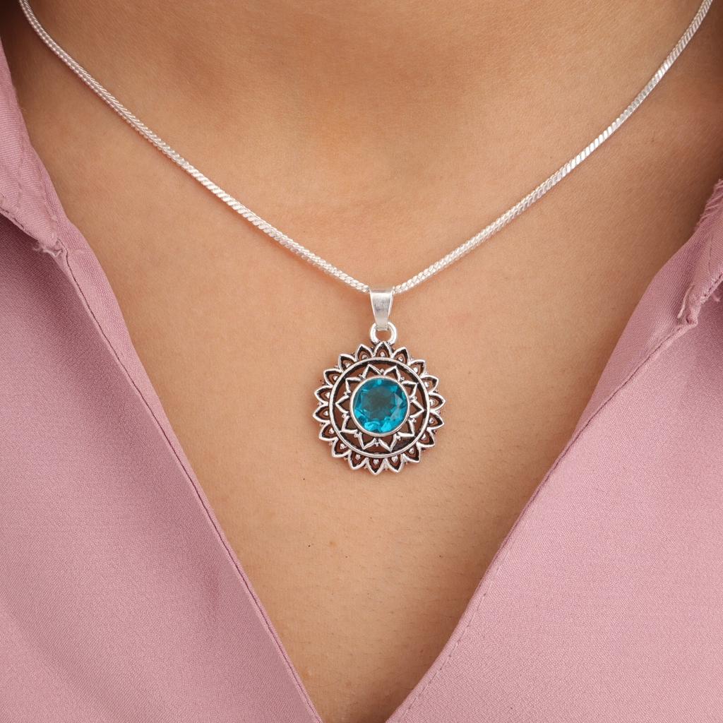Blue Apatite Gemstone 925 Sterling Silver Handmade Small Pendant 1.14" For Gift CP-30-1