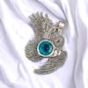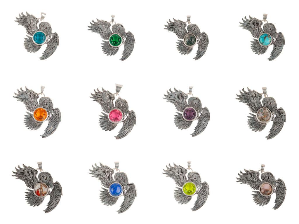 925 Sterling Silver Multi Gemstone Owl Designer Good Luck Jewelry Pendant 1.3" CP-16