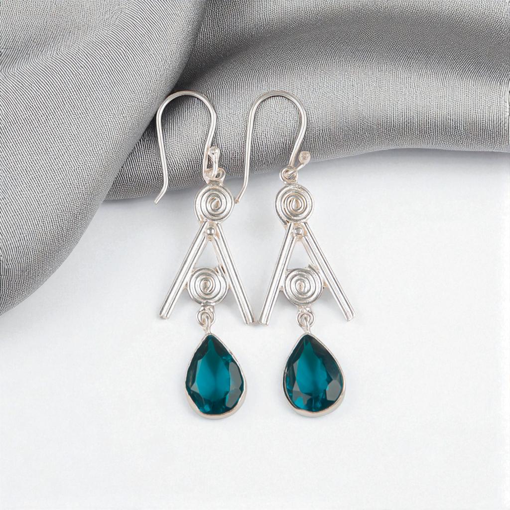 Apatite Gemstone 925 Sterling Silver Jewelry Handmade Drop/Dangle Earrings 2.4" EE-86-12