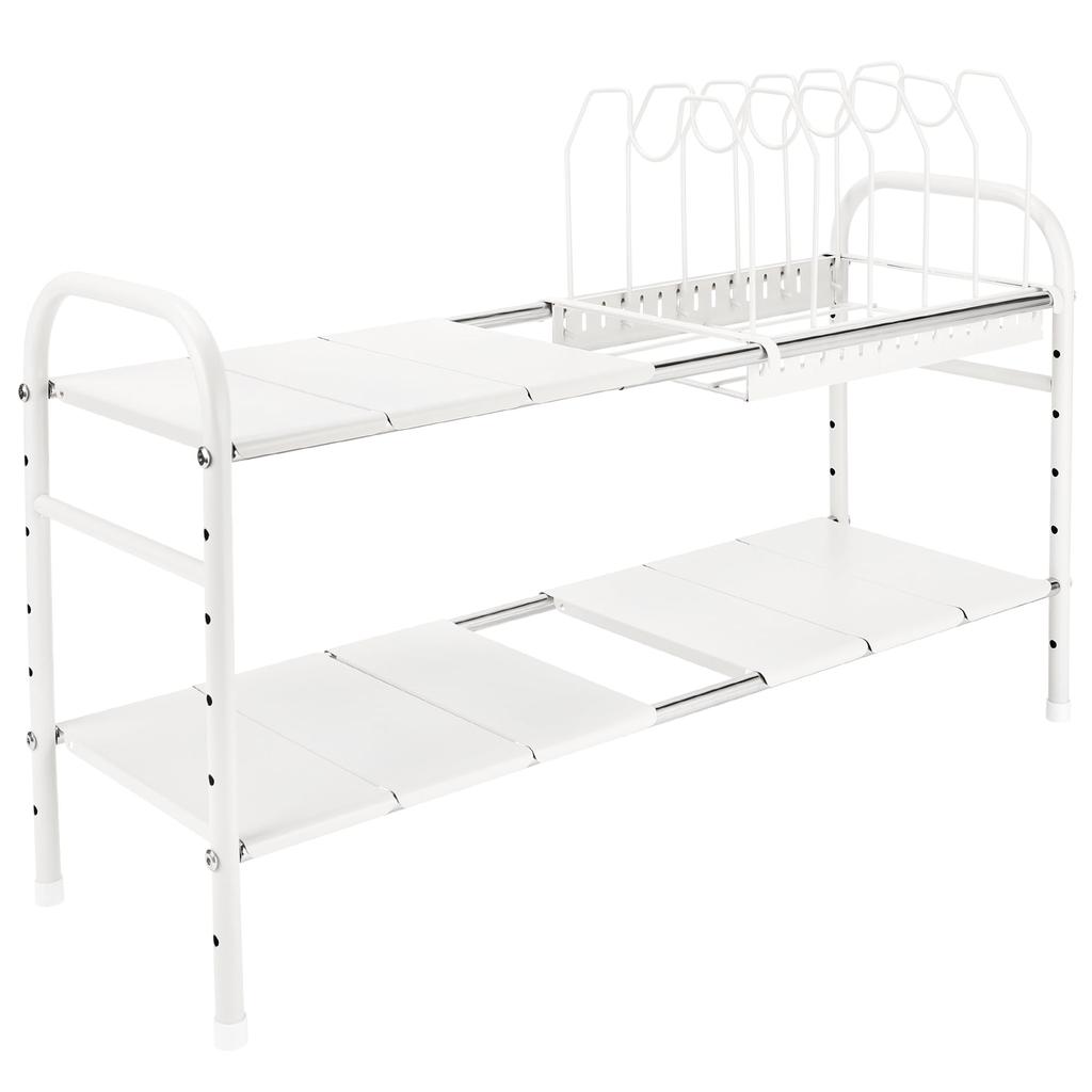 TITIROBA Storage Rack with Pot Pan Extendable Easy Extendable Kitchen Storage Freestanding Wide X Deep X White Under-Sink & Stand, 2-Tier, Assembly,