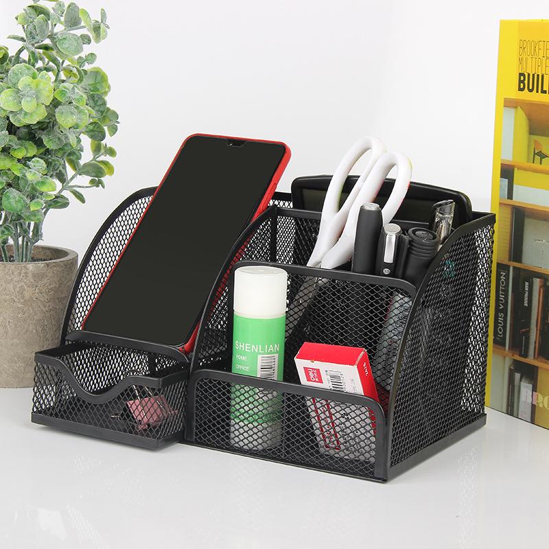 Metal Cutout Seven-Compartment Desktop Organizer: Multifunctional Pen Holder & Desk Storage Rack