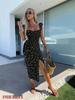 2025 Summer French Floral Midi Dress with Elegant Sling and Slit Design