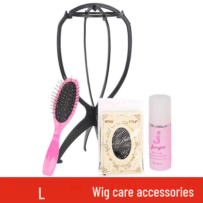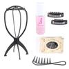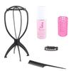 Wig Care Kit: Hairnet, Anti-Frizz Solution, Wig Stand, Tail Comb, Curling Rollers, Bobby Pins, Film