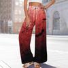 Women's Printed Wide Leg Pants With Pockets High Waist Drawstring Loose Casual Pants