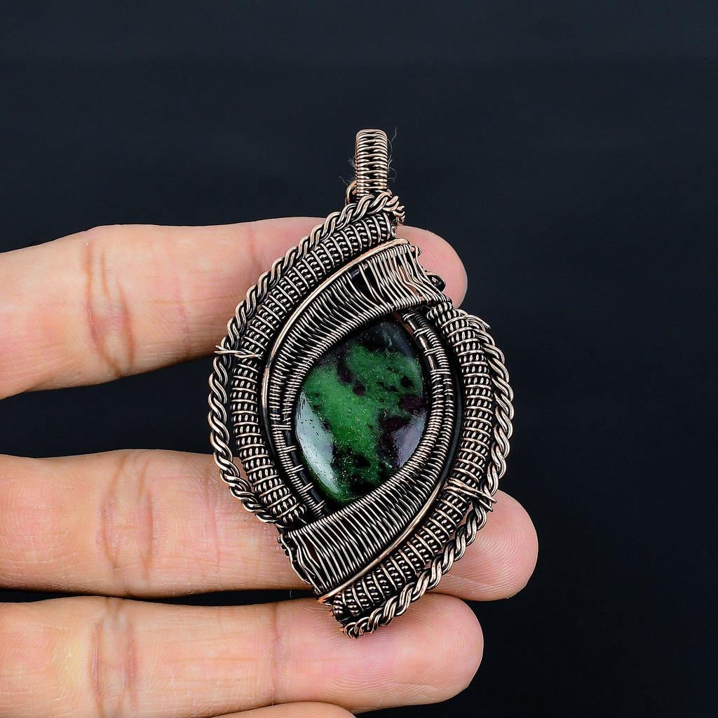 Ruby In Zoisite Pendant, Handmade Gemstone 999 Copper Wire Wrap Pendant Antique Jewelry, For Gift Copper Jewelry