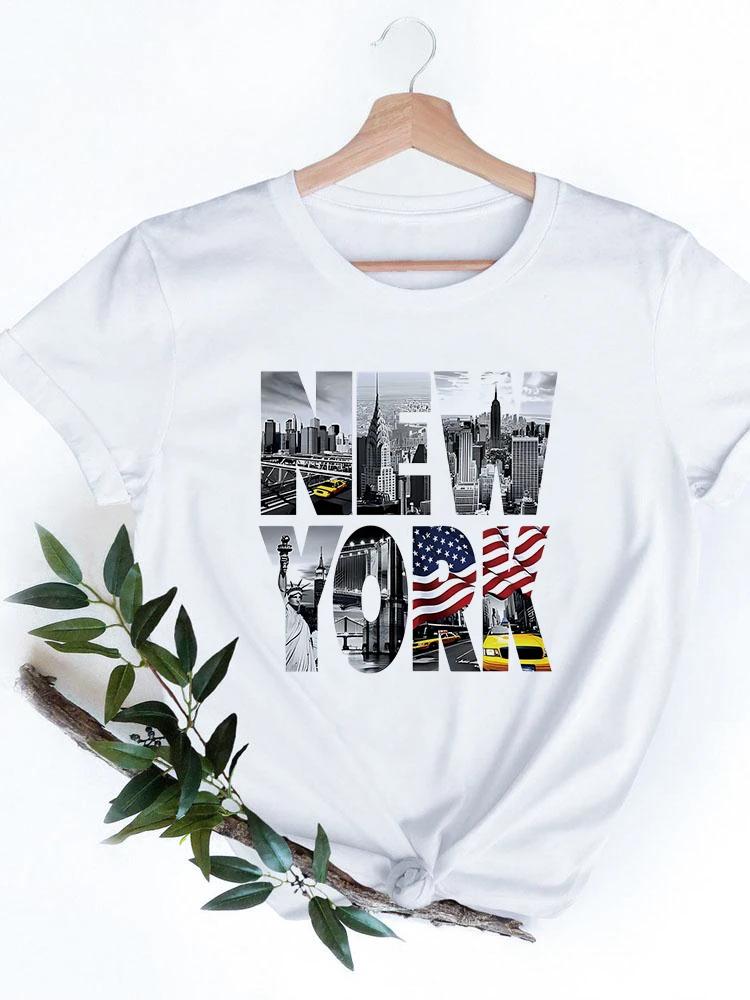 2024 Fashion Anime T Shirt Women New York City Graphic T Shirt Harajuku Kawaii Woman T Shirts Short Sleeve Femme Tops Tees