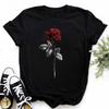 Red Rose Print Women T Shirt Summershort Sleeved Round Neck Harajuku Korean Style Graphic Tops Kawaii Female T-shirt Tops