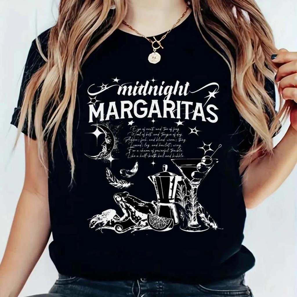 Midnight Margaritas Halloween Party Vintage Horror Cartoon Funny Women's T-Shirt Graphic Soft Summer Short Sleeve Halloween Styl