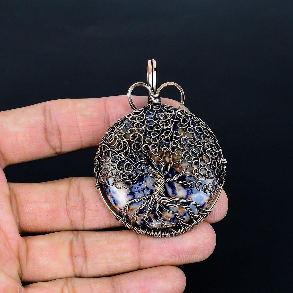 Sodalite Pendant, Handmade Gemstone 999 Copper Wire Wrap Tree Of Life Pendant Antique Jewelry, For Gift Copper Jewelry
