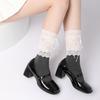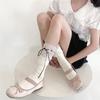 Lolita Lace Frill Mid-Calf Socks with Bow Ribbon - White Ballet Style JK Knee-Highs for Spring & Autumn