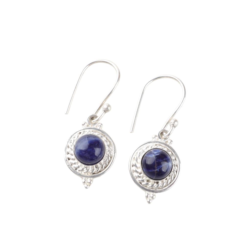 Natural Sodalite Gemstone 925 Sterling Silver Jewelry Handcrafted Earrings 1.43" EE-117-23
