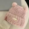 Cute Bear Wool Hat for Women In Winter Korean Plush Warm Furry Autumn and Winter Big Head Knitted Hat