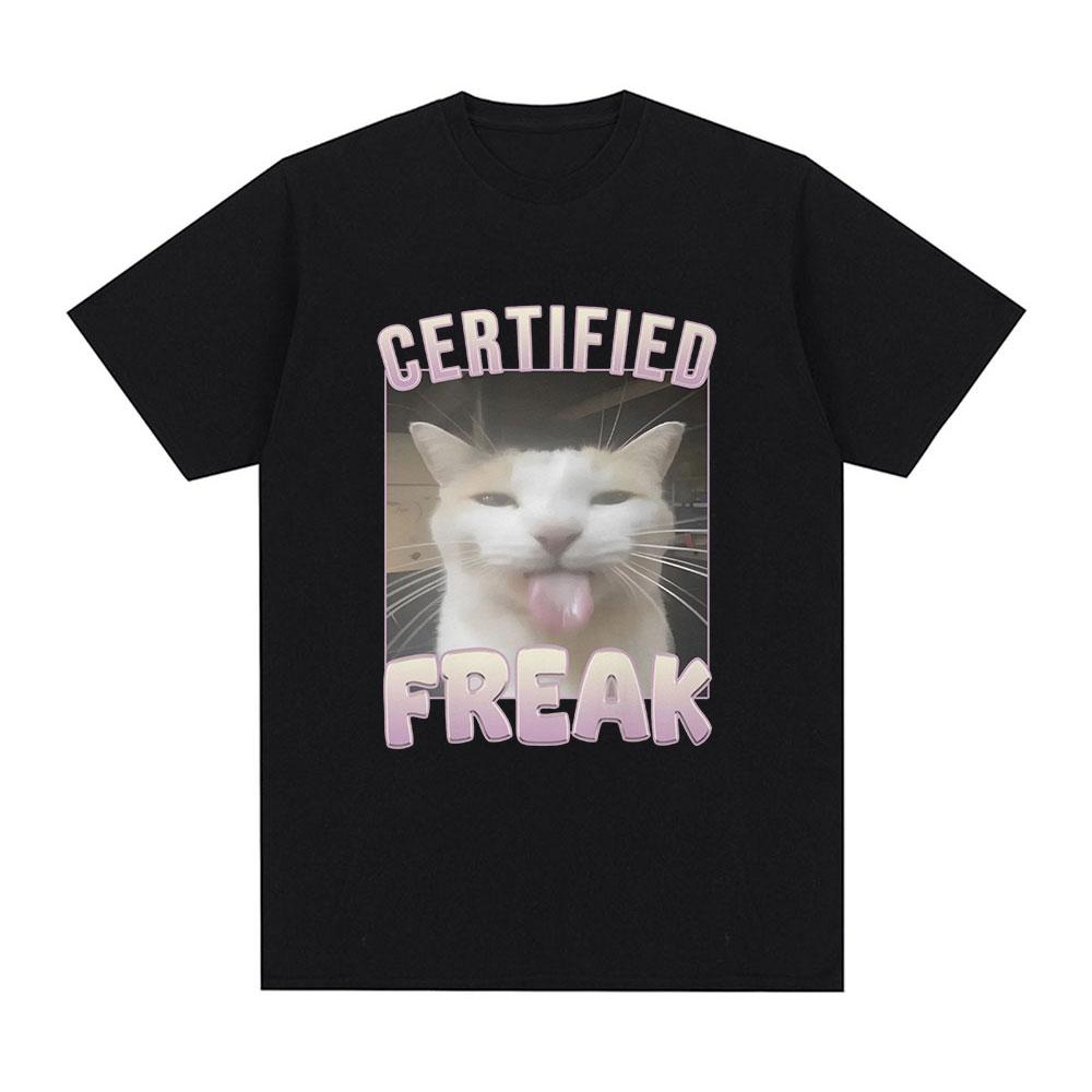 Certified Freak Funny Cat Meme T Shirt Men's Fashion Vintage Short Sleeve T-shirts Casual Cotton Oversized T Shirts Streetwear