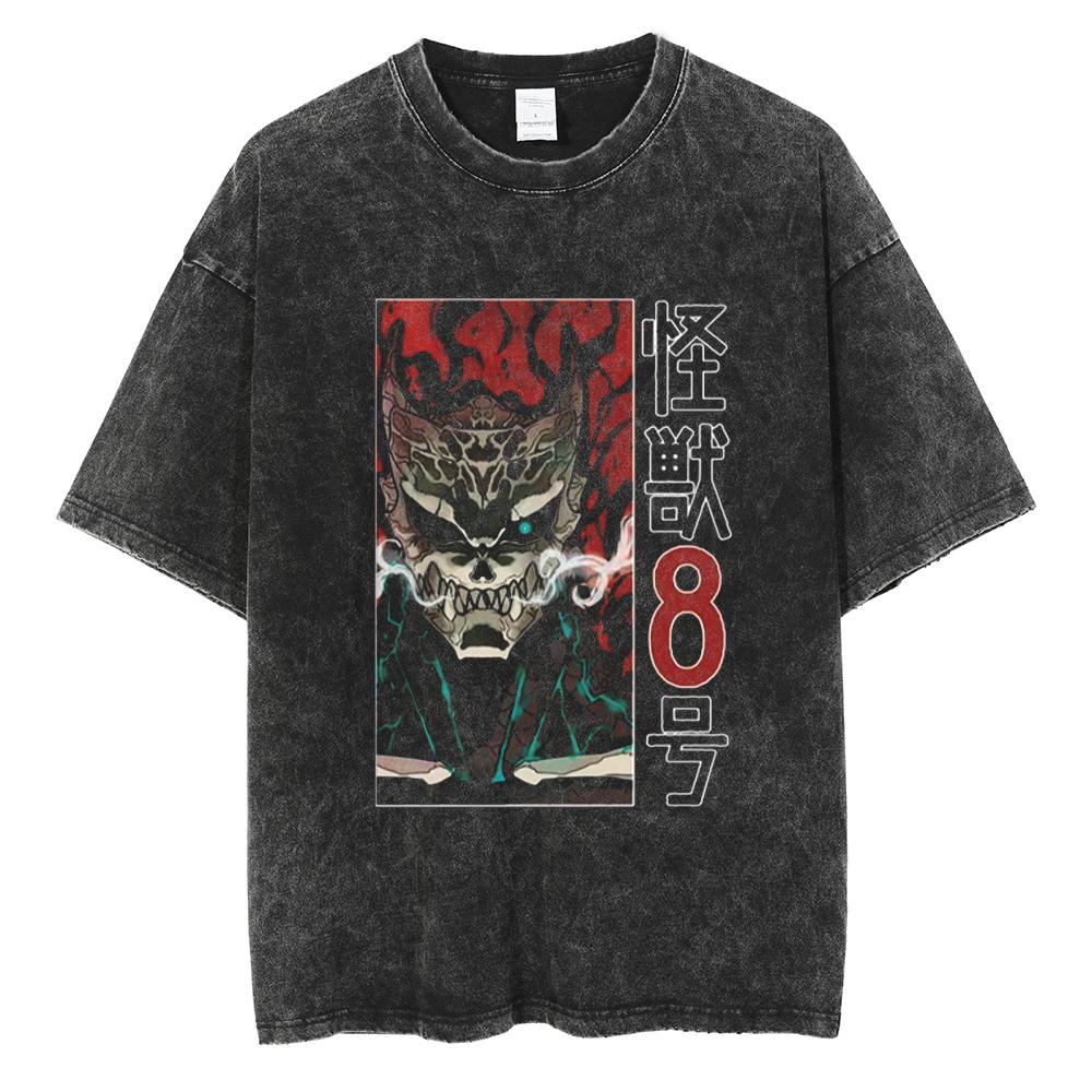 Japan Anime Kaiju No. 8 Cool Print T Shirt Men Women Vintage Washed Cotton Tshirts Oversized T-shirt Harajuku Male Y2k Tee