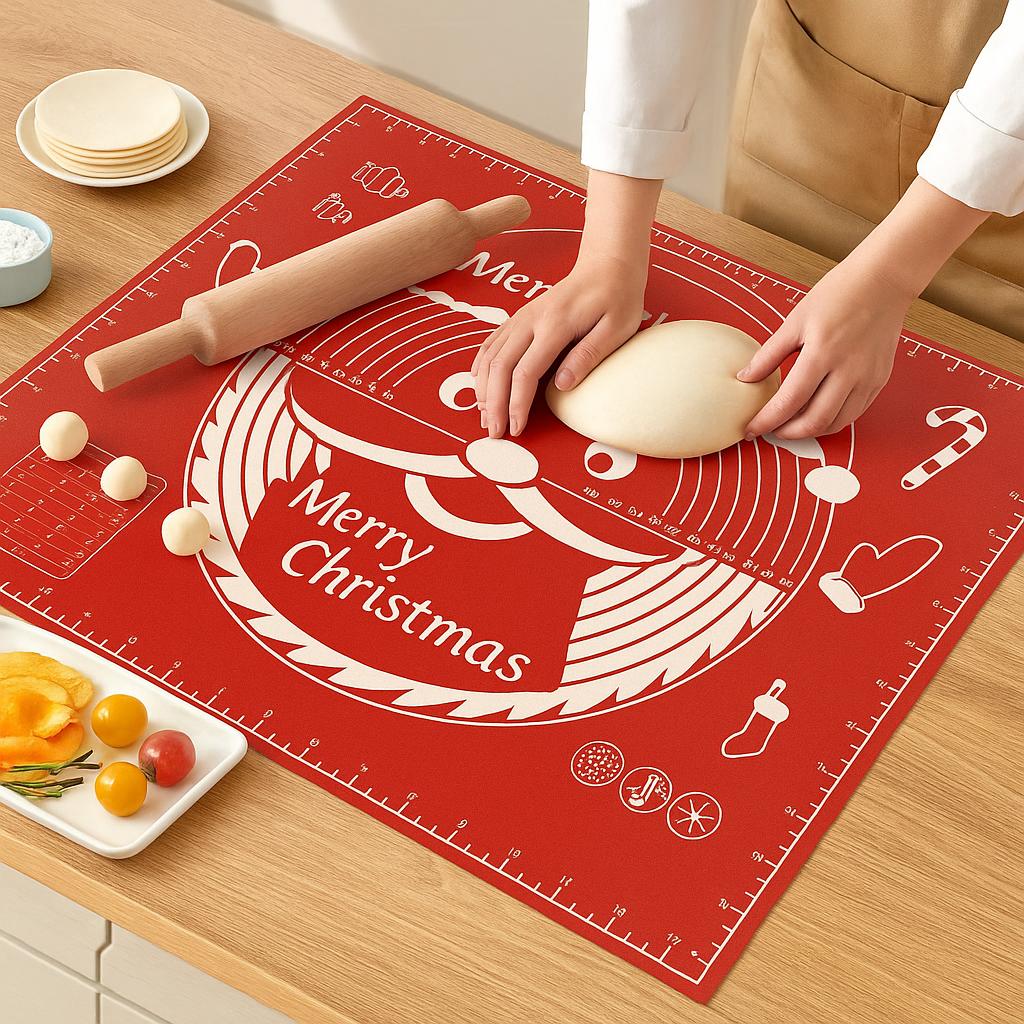 Christmas Baking Mat Non-Stick Silicone with Scale for Rolling Dough - Holiday Design for Cookies, Pies, Pastry - Festive Kitchen Accessory Gift
