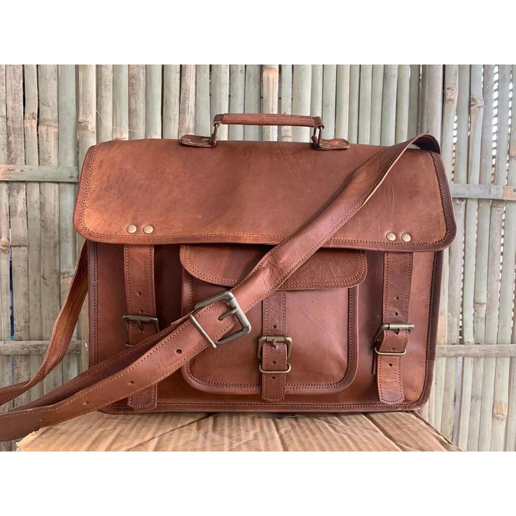 Vintage Briefcase Satchel Soft Leather Ideal for Laptop Messenger Bag Shoulder