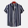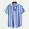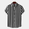 Spring and Summer New Men's Shirt Casual Striped Print Turndown Collar Short Sleeve Loose Buttons All-match Print Cardigan