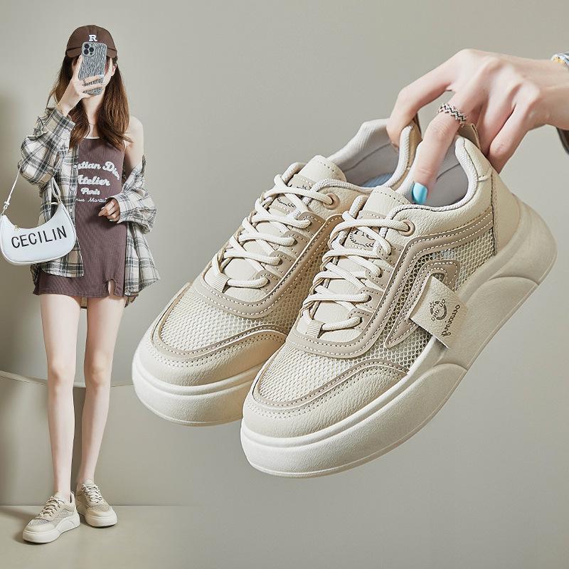 2025 Summer Women's Korean Style White Sneakers: Height Increasing, Breathable, Trendy Skateboard Shoes