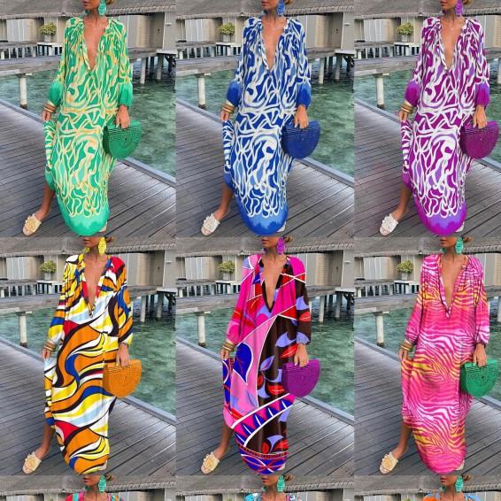 2022 Autumn V-neck Long Sleeve Print Dress for Women