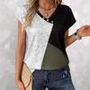 New Summer Two-tone V-neck Button-decorated Casual Short-sleeved Top