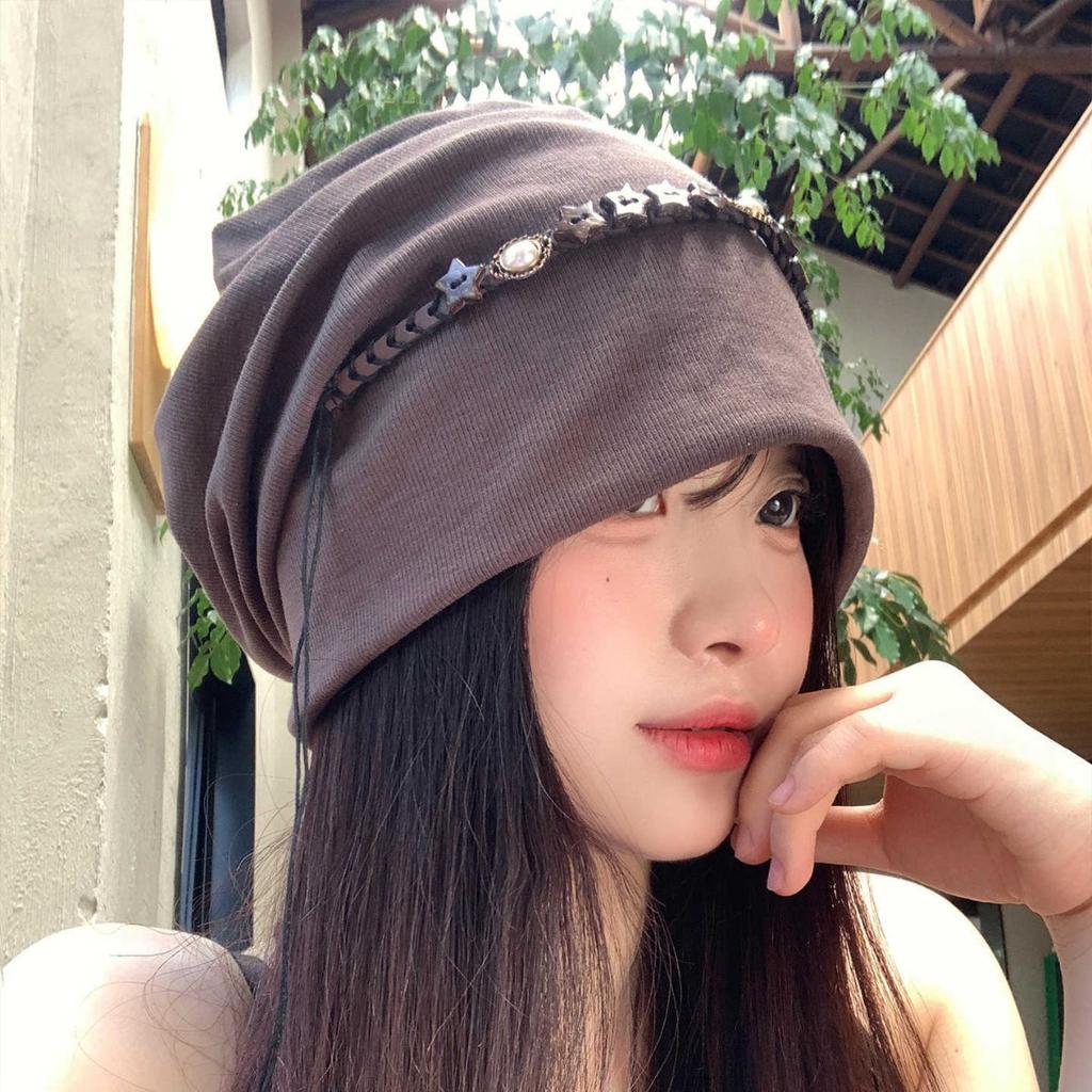 Five-pointed Star Tassel Baotou Hat for Women with Big Head Circumference Showing Face Small Pile of Hat Japanese Versatile Cold Hat