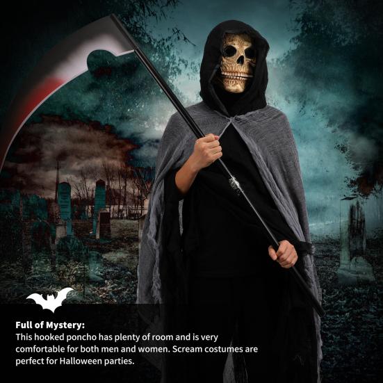 Halloween Grim Reaper Costume Black Hooded Cloak with Skull Masque Vintage Medieval Cape for Adult Cosplay Props