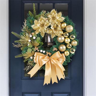 20" Christmas Wreath for Front Door Artificial Wreath with Ball Ornaments Golden Flowers Leaves Berries Pine Needles for Door Window Fireplace Winter