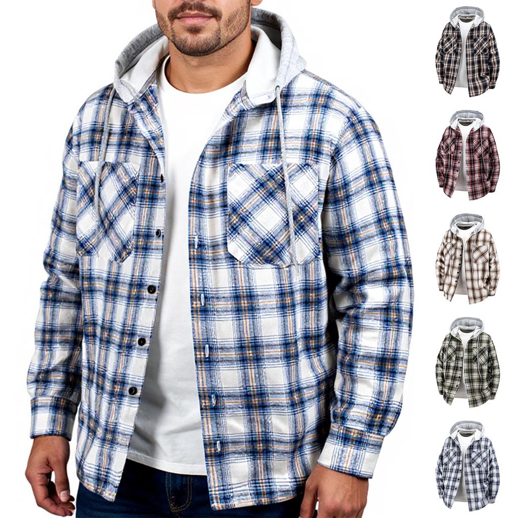 Men's Oversized Casual Hooded Plaid Shirt