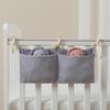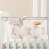 Double-Layer Pure Cotton Baby Stroller Storage Bag with Double Pockets and Printed Bottle Holder