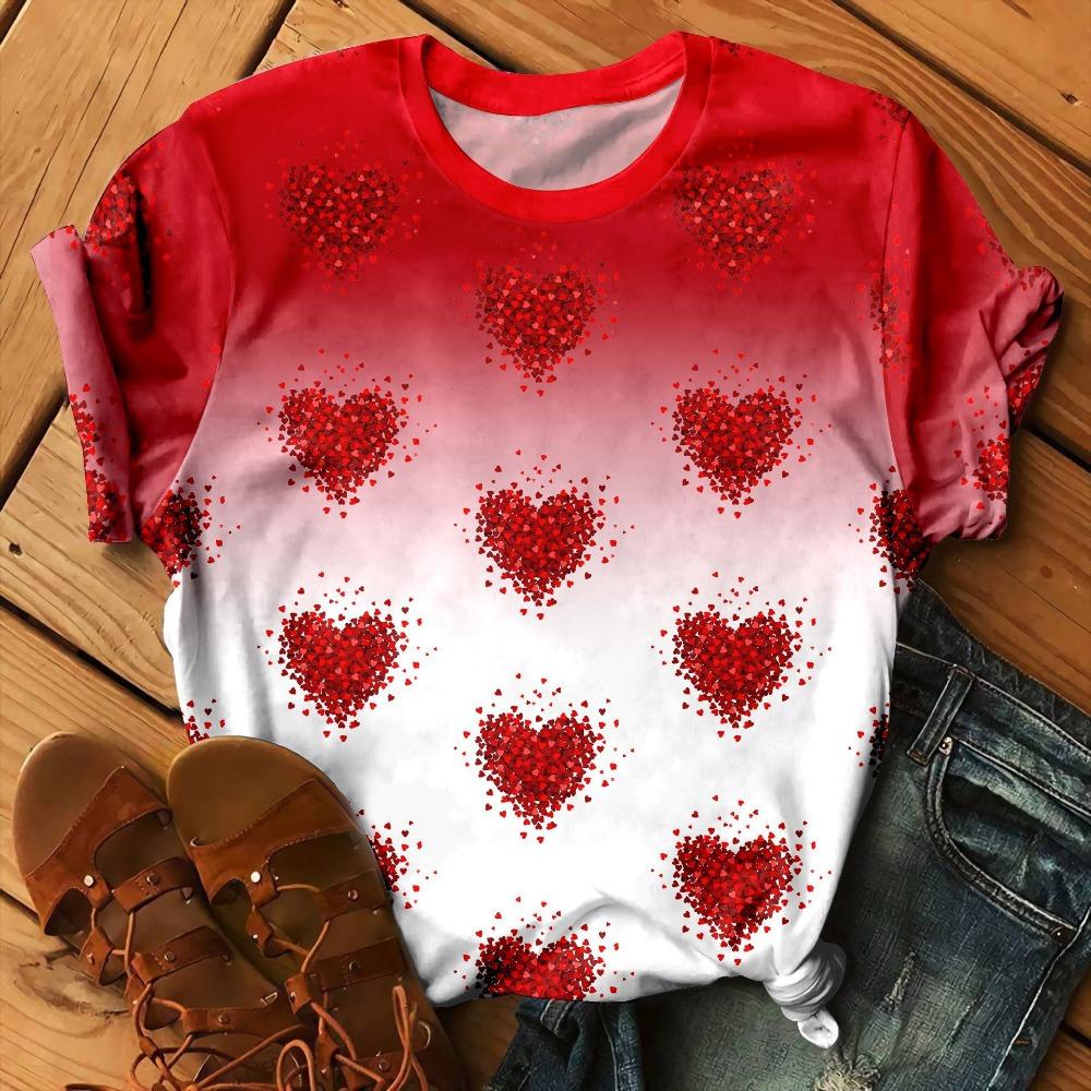 Love Floral Heart Pattern 3D Print T-Shirts Women O-Neck Short Sleeve T Shirt Y2k Harajuku Streetwear Tees Top Female Clothing