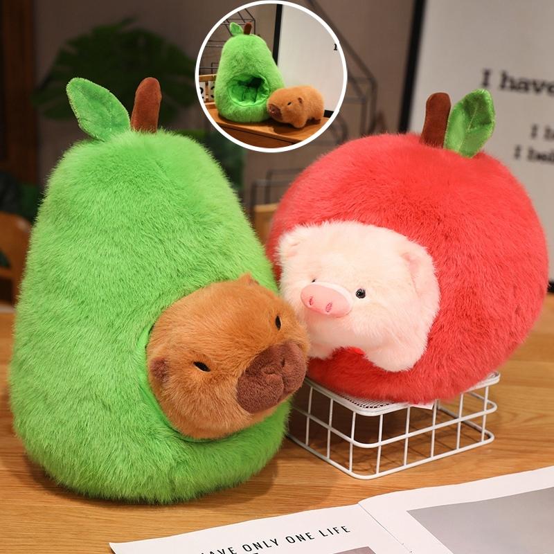 Fruit Capybara Avocado Plush Toy Stuffed Apple Pig Doll Sleep Pillow Holiday Birthday Gift Kawaii Room Decor Creative Cushion